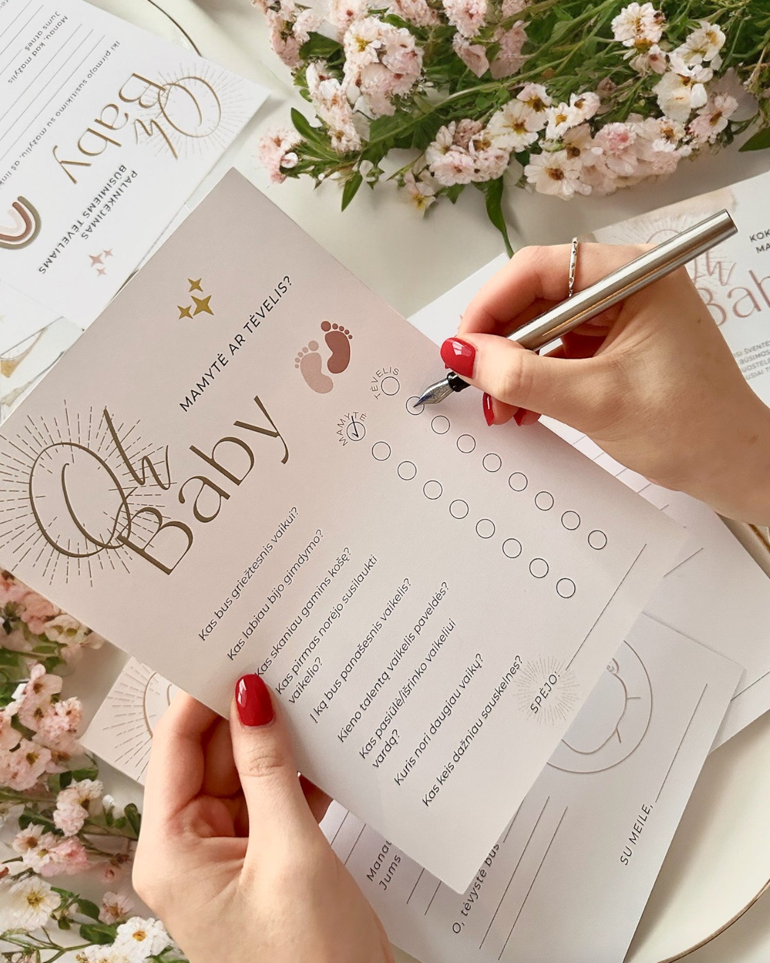 Kūdikio sutiktuvių žaidimų rinkinys "OH BABY", PDF, 4 vnt.
