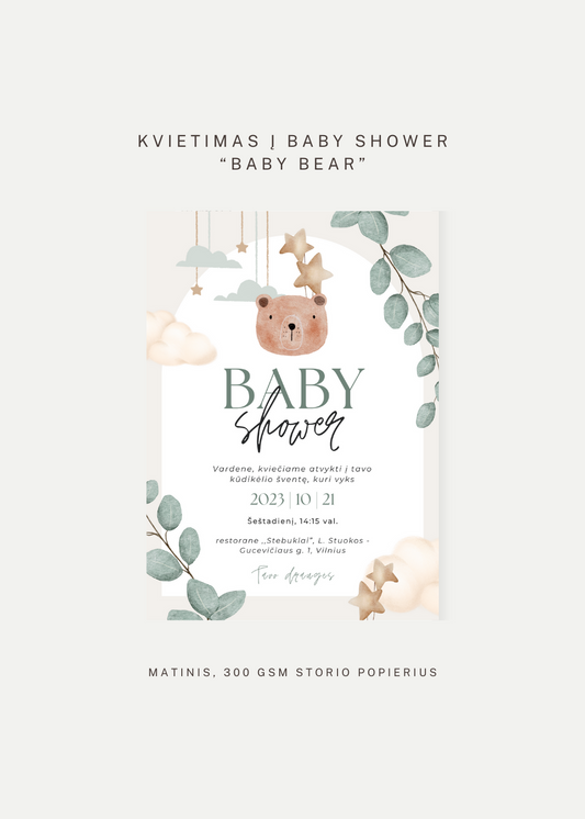 • Kvietimas į Baby Shower šventę BABY BEAR