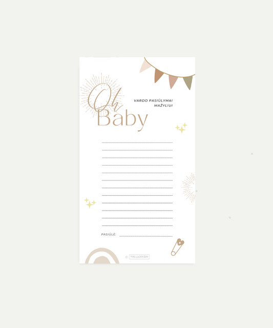 Kūdikio sutiktuvių žaidimų rinkinys "OH BABY", PDF, 4 vnt.