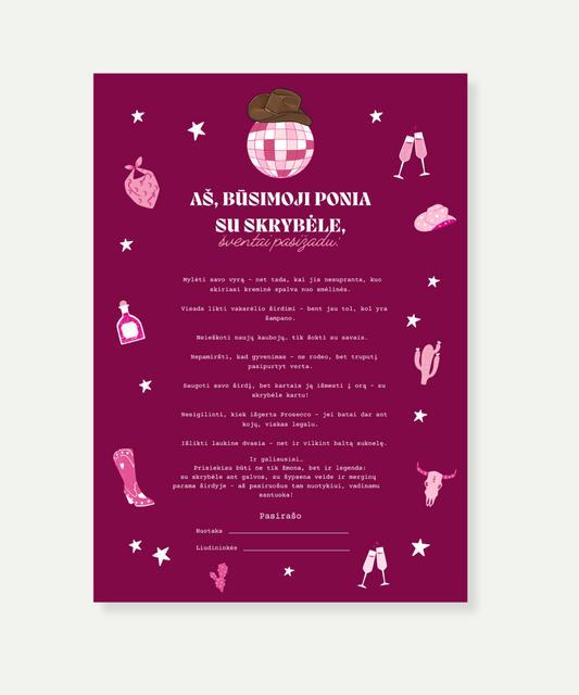 • Kaubojiška mergvakario priesaika „Yeehaw, būsima žmona!“