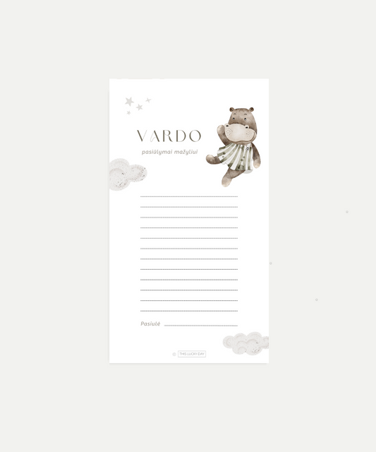 Kūdikio sutiktuvių vardo pasiūlymų mažyliui(-ei) kortelė (PDF)