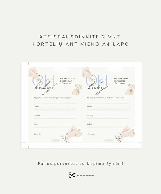 Kūdikio sutiktuvių žaidimų rinkinys "BABY BUNNY BLUE", PDF, 4 vnt.