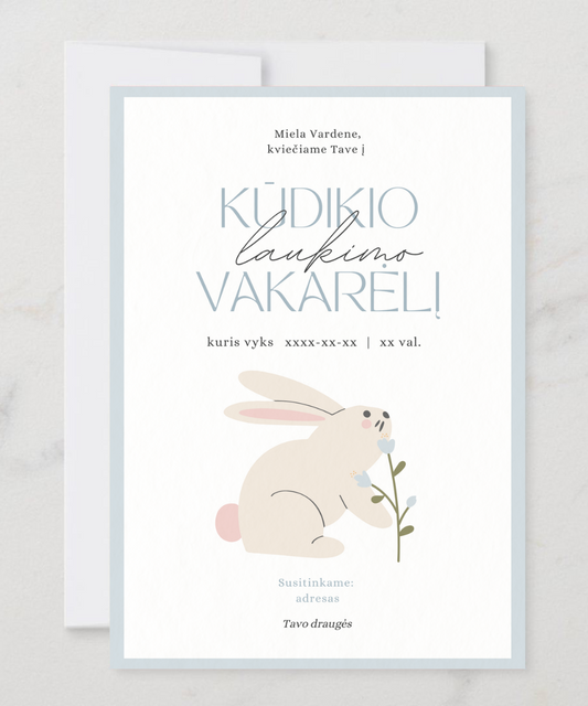 PDF kvietimas į Baby Shower BABY BUNNY BLUE