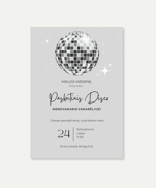 Pakvietimas į mergvakarį. Mini rinkinys "PASKUTINIS DISCO"