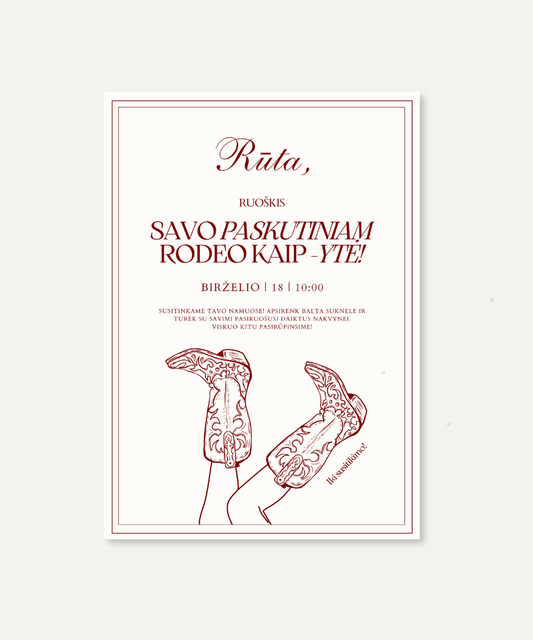 PDF kvietimas į mergvakarį "PASKUTINIS RODEO"