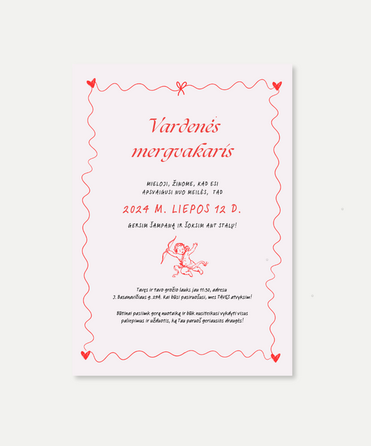 Pakvietimas į mergvakarį. Rinkinys MEILĖ SKLANDO ORE